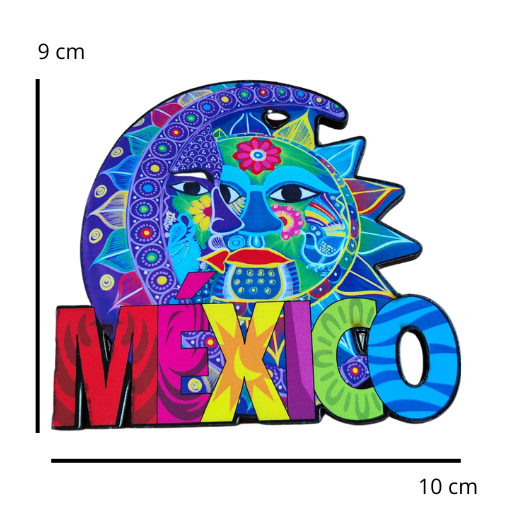 Adorn your space with the mysticism and balance of Mexican culture with this decorative magnet featuring the iconic Sun and Moon design. This representation of cosmic duality is a popular motif in Mexican art and crafts, symbolizing day and night, light and darkness. Perfect as a souvenir from Mexico, a memento, or an original gift for those who appreciate folk art and pre-Hispanic symbolism. Its colorful and harmonious design will fill your refrigerator or office with meaning and beauty. Search for “Mexican Sun and Moon magnet” and bring home a piece of the Aztec worldview.